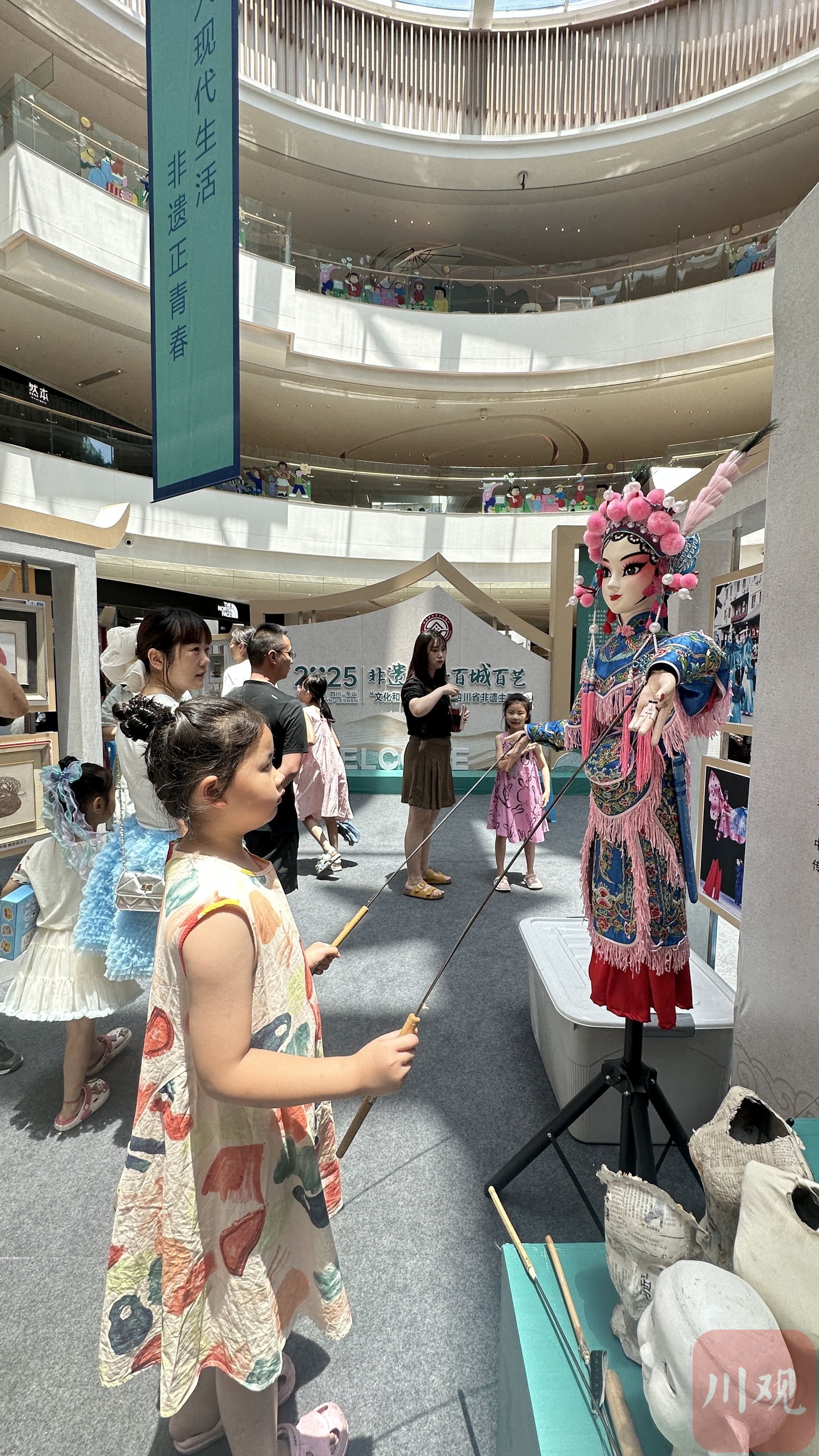 活动现场,“非遗四川·百城百艺”主题展、四川非遗焕新购物节、“跟着非遗美食游四川”展示展销和非遗展演等主题活动成为众人打卡点。来自省内市(州)的21个“非遗四川·百城百艺”品牌通过游览式长廊、开放式工坊,利用图文展示、实物陈列、现场展示等形式,展示了近年来四川非遗在保护、传承和创新中取得的新成果。60余家美食企业现场“烹”出各地非遗美食,吸引游客“跟着非遗美食游四川”。
