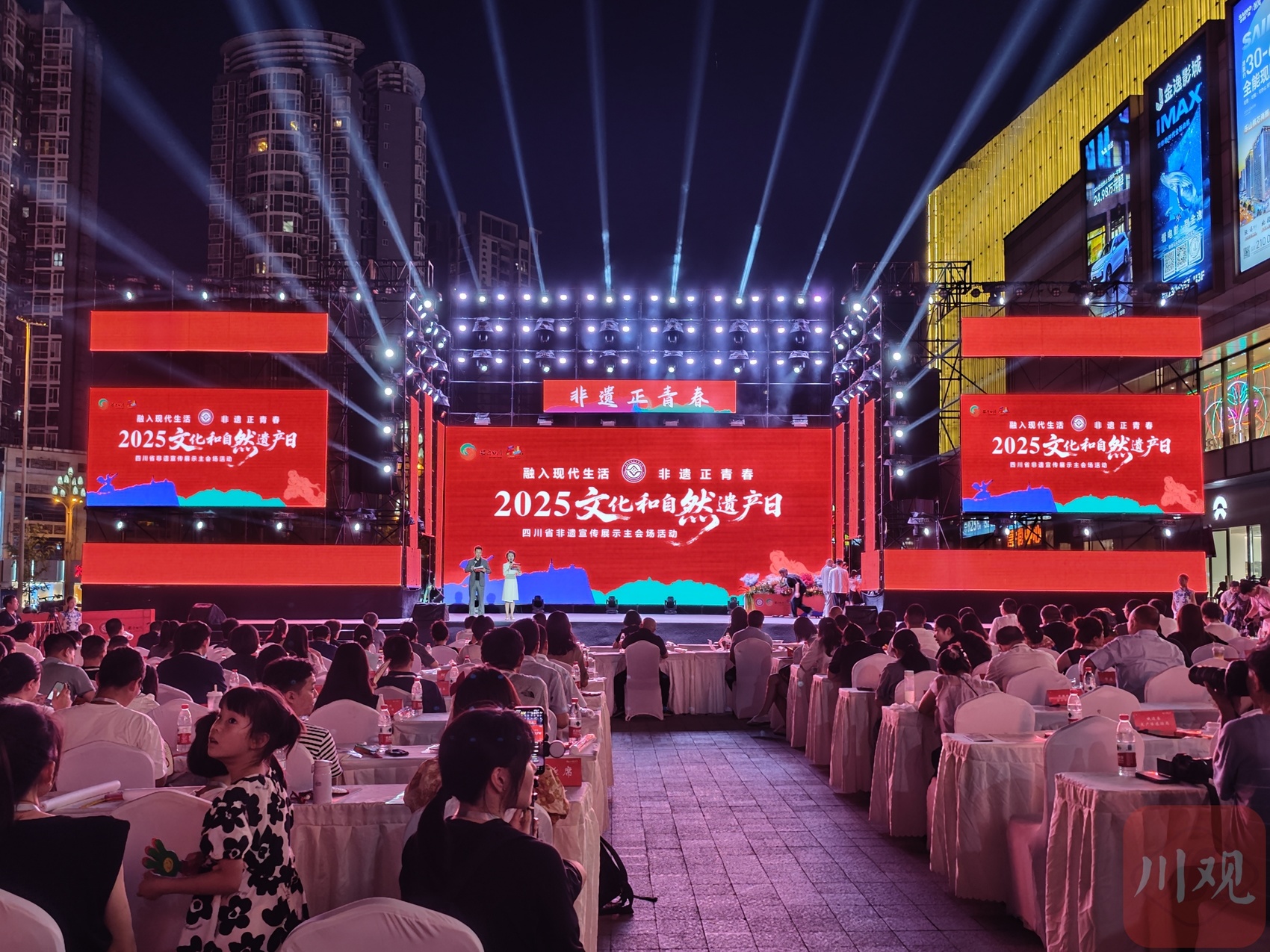 “说非遗,赞非遗,跟着非遗去旅行,民间传说口耳传,传承非遗有底蕴!”6月15日晚,随着舞台上清脆响亮的传诵声响起,2025年“文化和自然遗产日”四川省非遗宣传展示主会场活动暨四川非遗焕新购物节在乐山市启幕。
