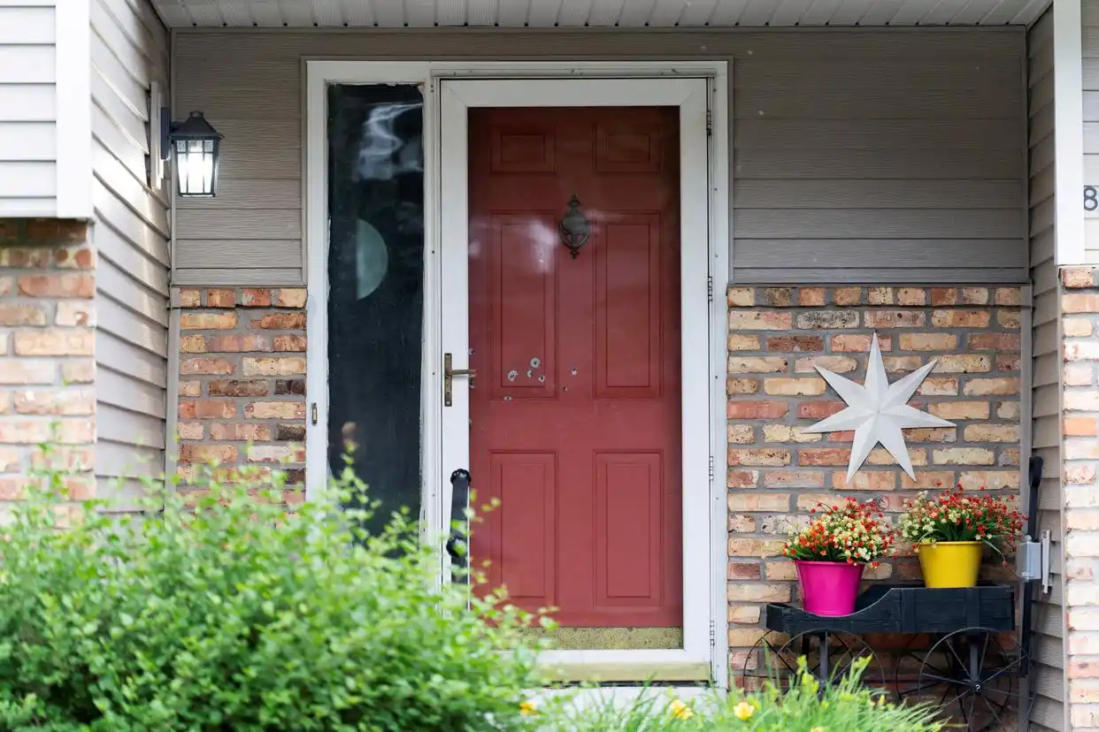 这是6月14日在美国明尼苏达州钱普林拍摄的明州州议会参议员约翰·霍夫曼寓所门上的弹孔。约翰·霍夫曼和妻子当日在钱普林的寓所内遭袭受伤。新华社/路透