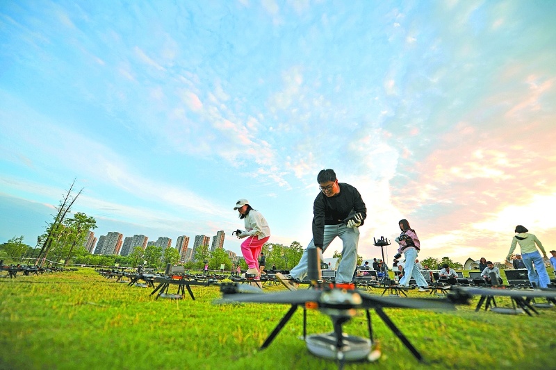 四川汉航科技有限公司员工为无人机表演做准备。南充市融媒体中心记者余中华摄