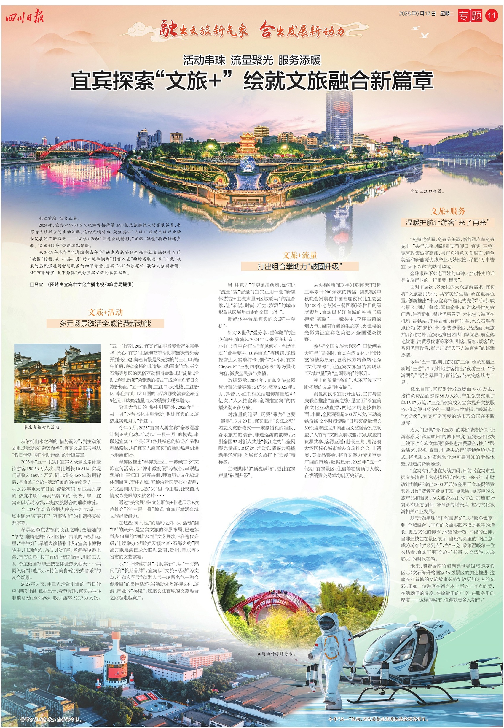 值此节点,《四川日报》整版关注宜宾如何以“加法思维”激活文旅新动能。