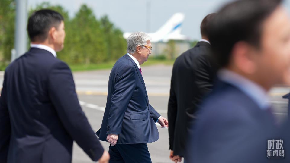 2024年7月,托卡耶夫总统在筹备上合峰会的繁忙日程中抽身亲赴机场迎接习主席。