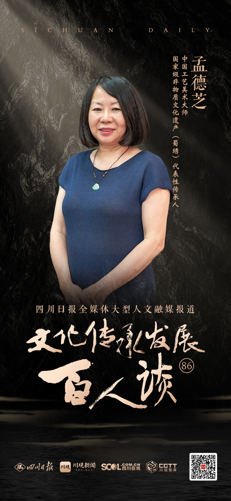 让孟德芝记忆犹新的是,此前有记者采访她的儿子,问他怎么看待“母亲当年从事蜀绣的辛苦”。儿子毫不犹豫地回答:“你不要觉得她辛苦,其实她从事自己所热爱的事业是很愉快的,内心是很幸福的。”