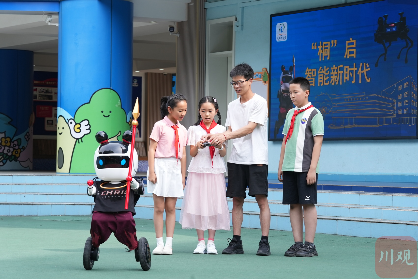 在泡桐树小学,机器人“小吒”是校园的安全引导员,它迎接孩子们进校,并开展语音服务,进行安全指引
