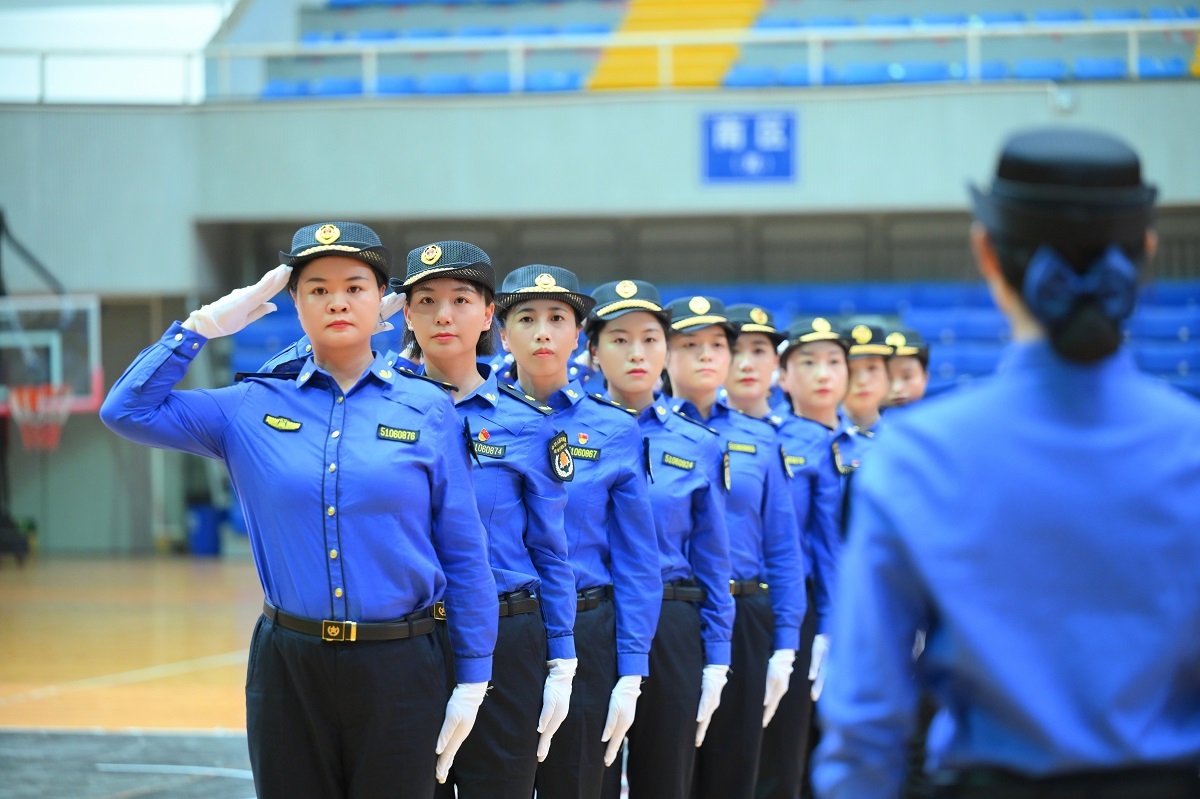 “稍息!立正!向右看齐!”走进队列会操现场,来自全市13支参赛队伍的130名参赛队员身着整齐的制服,队容严整,精神抖擞,依次进行着整理着装、立正稍息、停止间转法、齐步走、跑步走等基础队列动作,每一个动作都精准到位。