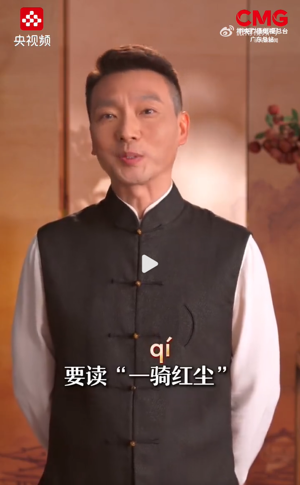 最近,电视剧《长安的荔枝》热播,“一骑红尘妃子笑,无人知是荔枝来”这句诗的读音也引起大家讨论。“骑”该读“qí”还是“jì”呢?主持人康辉解答:按照现行的普通话标准语音,要读“一骑(qí)红尘”。他还进一步解释,在《现代汉语词典》第七版,“骑”这个字在表示骑兵,也泛指骑马的人的时候,只标注了一个读音“jì”。