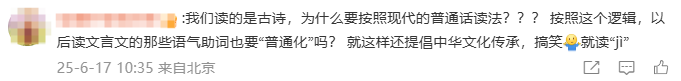 也有网友认为,不能用现代汉语来规范古诗的读音,因为古时候没有流行标准普通话↓↓↓