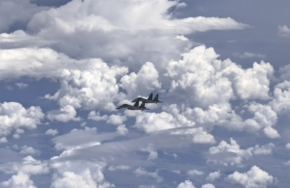 习近平主席乘坐的专机进入哈萨克斯坦领空后,哈萨克斯坦空军战机升空护航。
