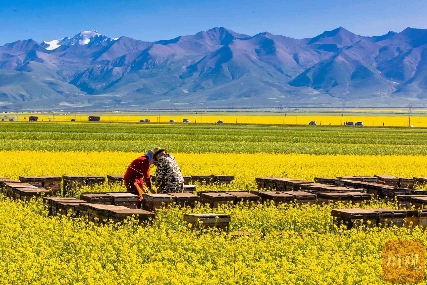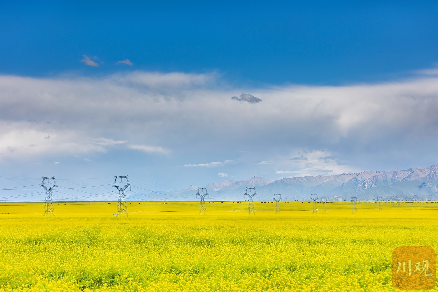 青海门源县青石咀镇的油菜花海一眼望不到边。