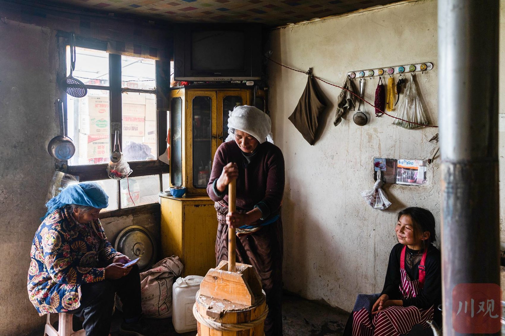 青海海北藏族自治州刚察县的一家牧民正在家中制作糌粑。