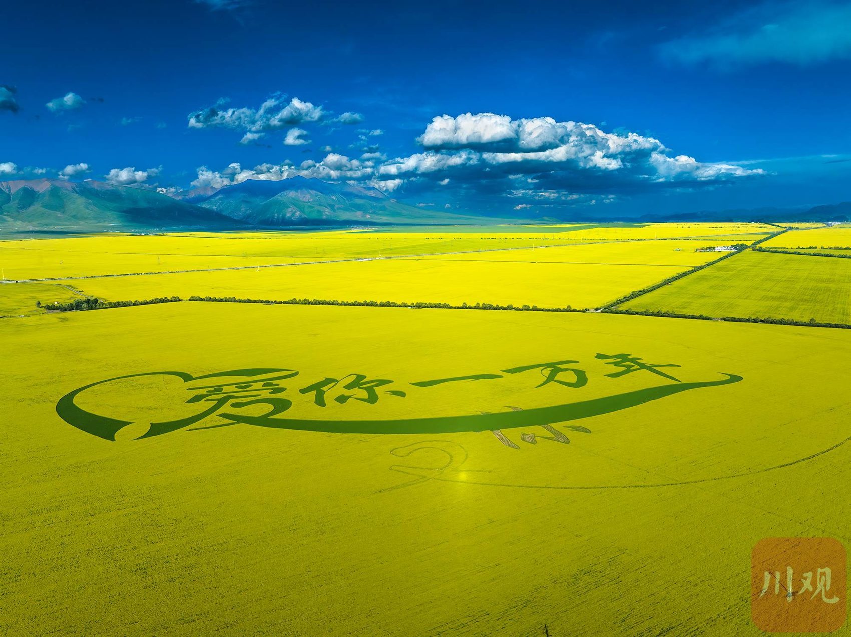 青海门源县青石咀镇花田观 “爱你一万年” 景观。
