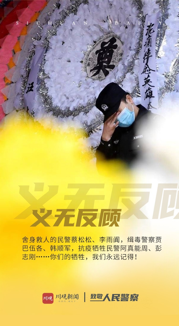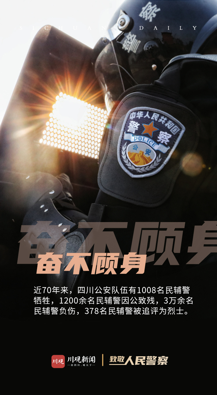 人民警察爱人民,人民警察人民爱。祖国没有忘记,人民没有忘记, 巴蜀大地9100万父老乡亲没有忘记,在四川公安70余年的峥嵘岁月里,1008名民辅警英勇牺牲,1200余名民辅警因公致残,3万余名民辅警光荣负伤,378名民辅警被追评为烈士 ……