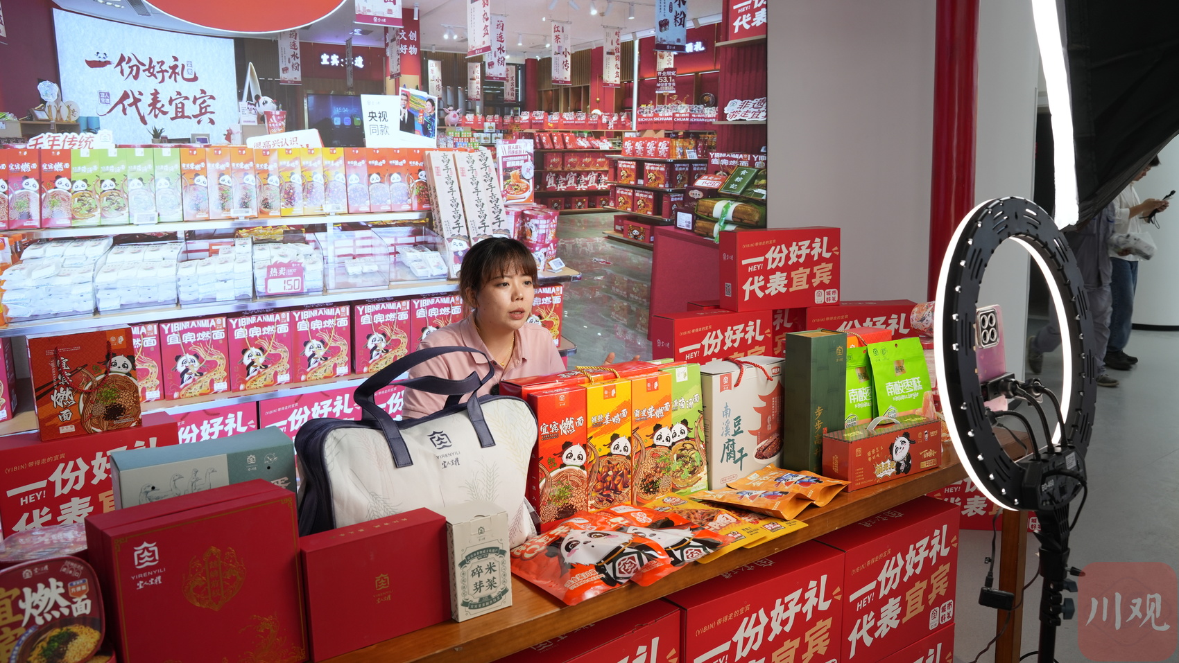 “家人们看过来!这款鲜辣姜鸭面是我们的特色,非常开胃,现在下单还能领券享受优惠!”6月18日,在宜宾数字直播生态联盟基地选品中心里,“宜人宜礼”主播正热情地向网友推介宜宾特色美食。镜头前,经典干拌燃面、口蘑菌汤面、筠连水粉、南溪豆腐干等美食一字排开,引得弹幕不断刷屏。
