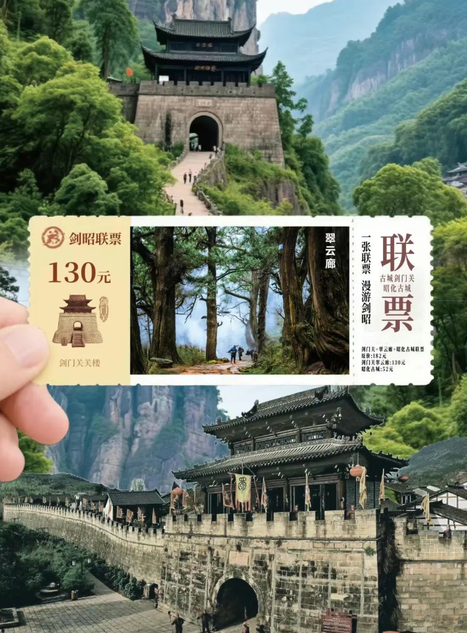 此次推出的两款联票套餐均享大幅折扣:原价182元的剑门关、翠云廊、昭化古城三联套票,现价130元(7折);剑门关与昭化古城双景套票原价157元,现价105元(6.7折),目前已在美团、携程等全平台OTA渠道发售。