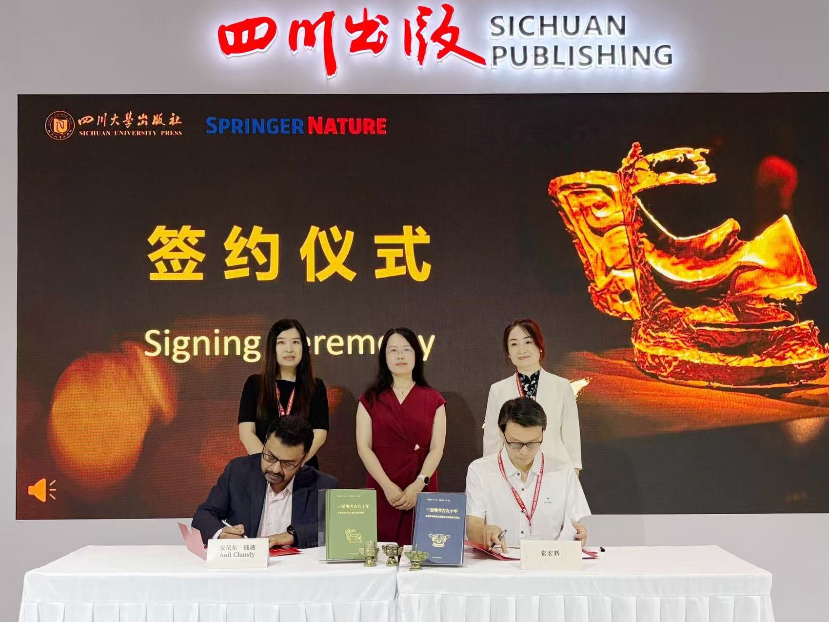 6月19 日,四川大学出版社与施普林格·自然集团 “青铜时代的中国:三星堆 - 金沙”系列图书合作出版签约仪式在第三十一届北京国际图书博览会(以下简称“图博会”)举行,正式开启该系列图书的全球传播之旅。
