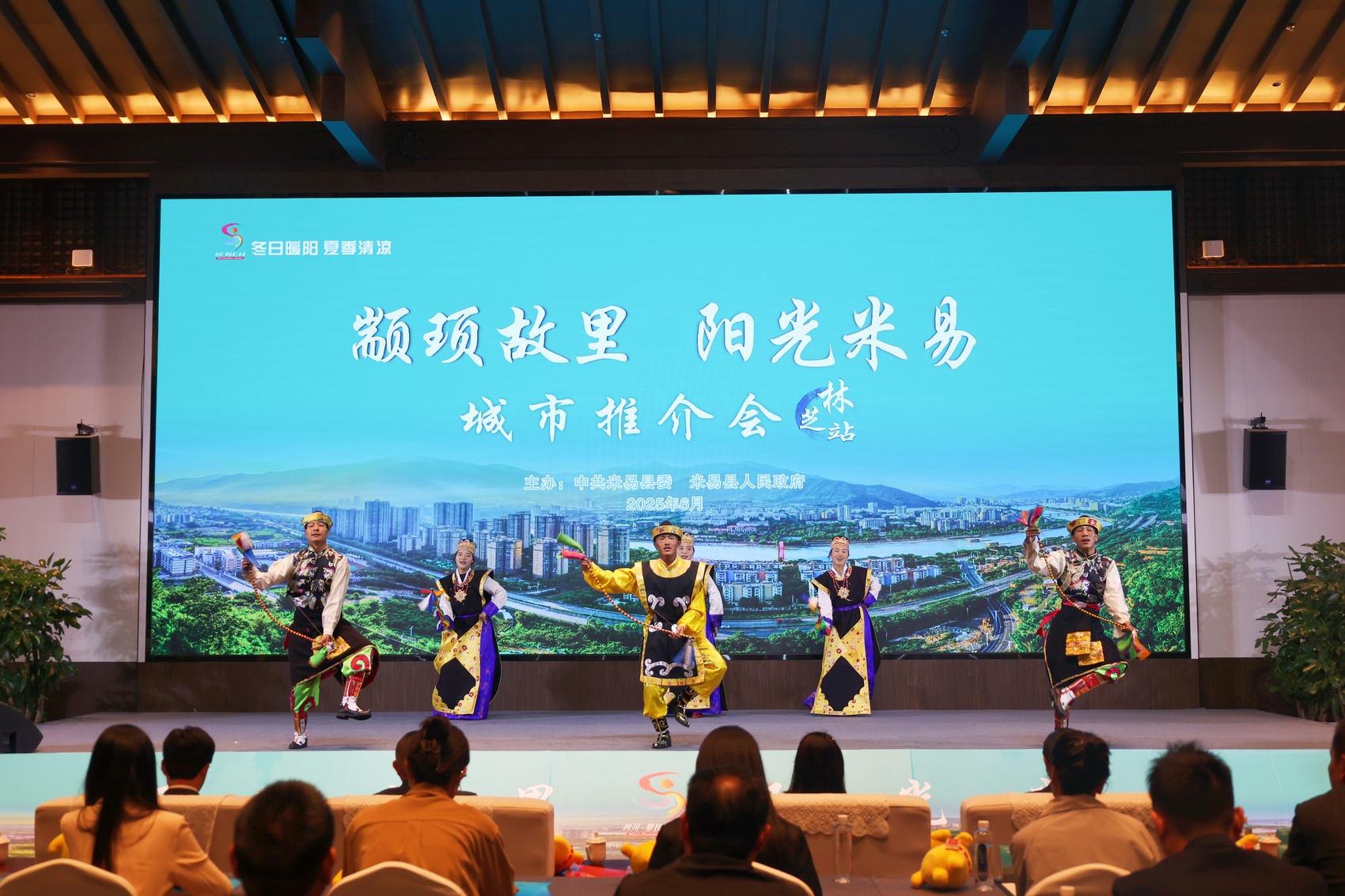 推介会在浓郁的民族风情中启幕。身着藏族传统服饰的舞者踏着《贡布箭舞》的欢快节奏,北纬26°康养胜地画卷随着《长安米贵 这里米易》的城市形象片徐徐展开,以流动的光影向林芝各界发出盛情邀请:米易四季如春,宜居、宜业、更宜心。