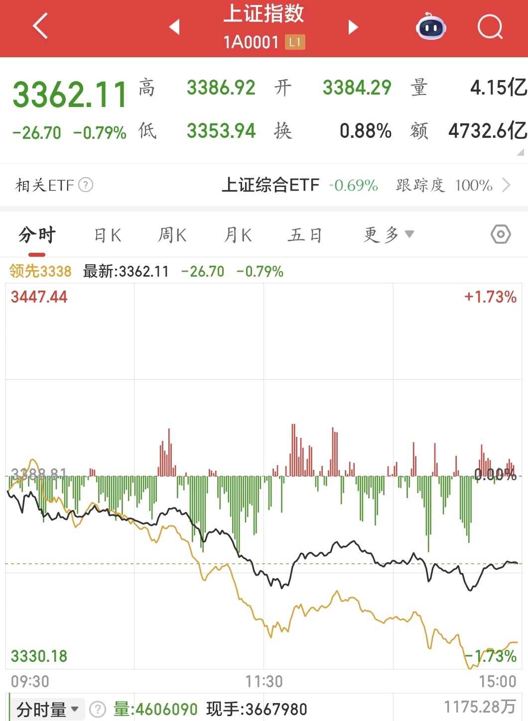 6月19日,A股市场三大指数集体小幅低开,随后震荡下行,午后虽有短暂反弹,但整体维持弱势,最终三大指数均以阴线报收。截至收盘,沪指跌0.79%报3362点,深证成指跌1.21%,报收10051.97点;创业板指跌1.36%,报2026.82点;北证50跌1.98%。全天成交12808亿元,较前一交易日增量591亿元,全市场超4600股下跌。