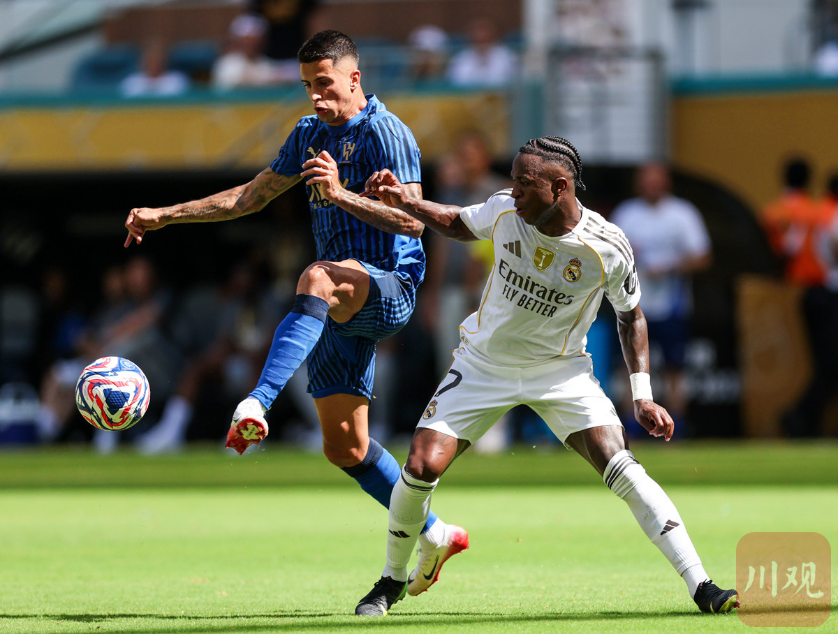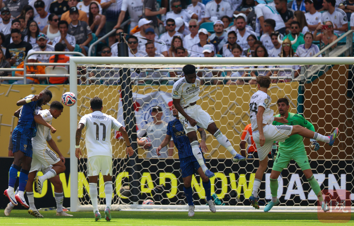 北京时间2025年6⽉19⽇凌晨3点,世俱杯H组首轮上演焦点对决,皇家⻢德⾥对阵亚洲豪⻔球队利雅得新⽉,双方名将悉数出战。62415名观众涌⼊球场,⻅证双方世俱杯第1战。第92分钟,皇家⻢德⾥罚丢点球,错失绝杀机会,爆冷1-1战平利雅得新⽉。本场⽐赛也是皇⻢新帅阿隆索和利雅得新⽉新帅⼩因扎吉的执教⾸秀。