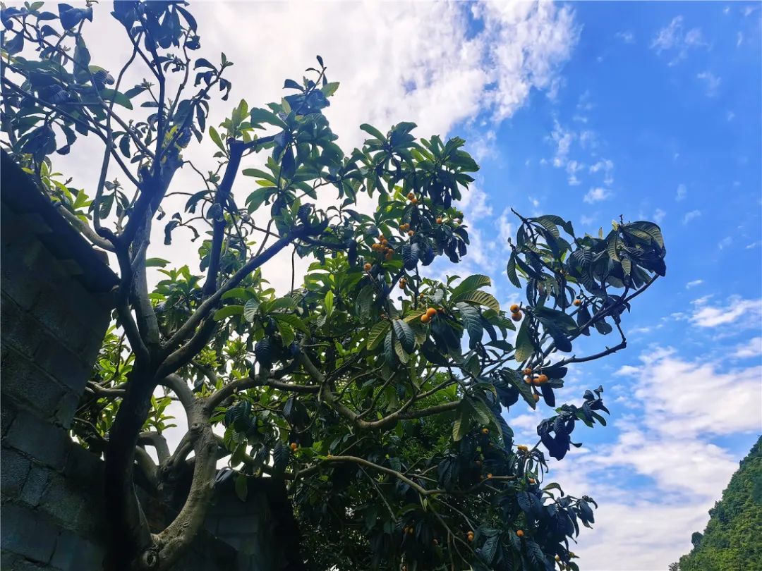 更吸引人的是树上的枇杷。枝头缀满硬币大小的果实,为这翠绿的树冠增添勃勃生机。