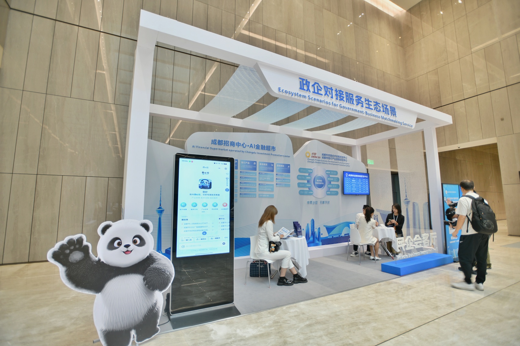 2025“投资成都”全球招商大会主活动会场外的“招商AI金融超市”展台。