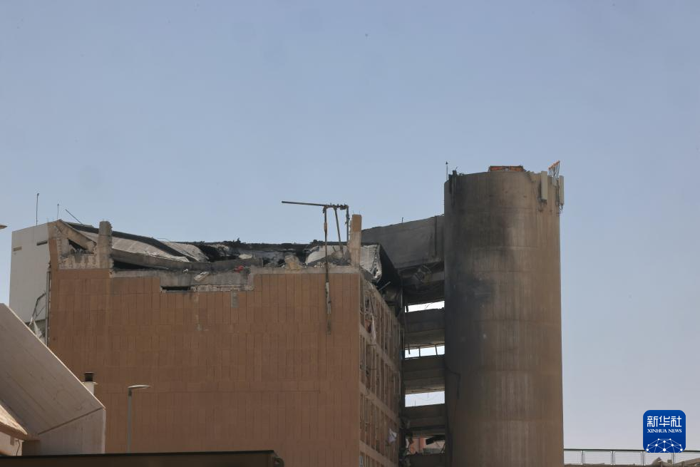这是6月19日在以色列南部贝尔谢巴拍摄的在导弹袭击中受损的医学中心。新华社/基尼图片社