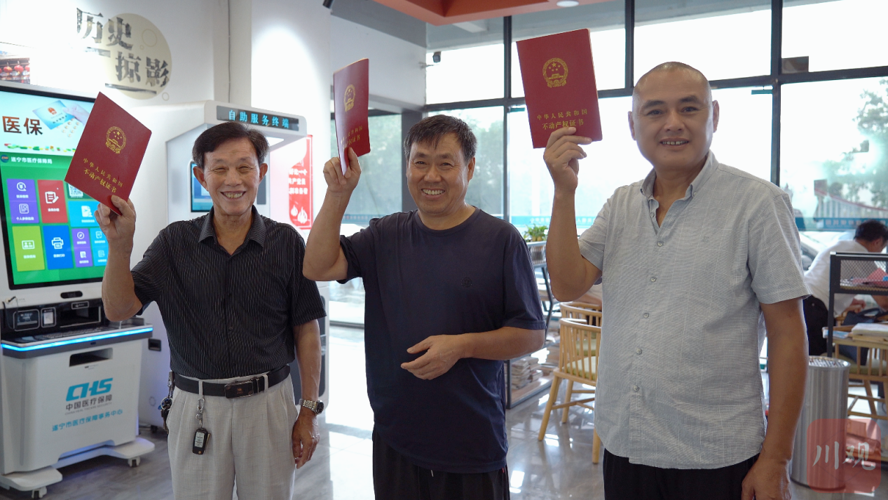 “盼了这么久,终于拿到房产证了,娃娃上学的事也不用发愁了!”近日,遂宁市船山区龙凤镇白鹤社区20户安置群众在不动产权集中颁证仪式上,收到了期盼7年的房产证。