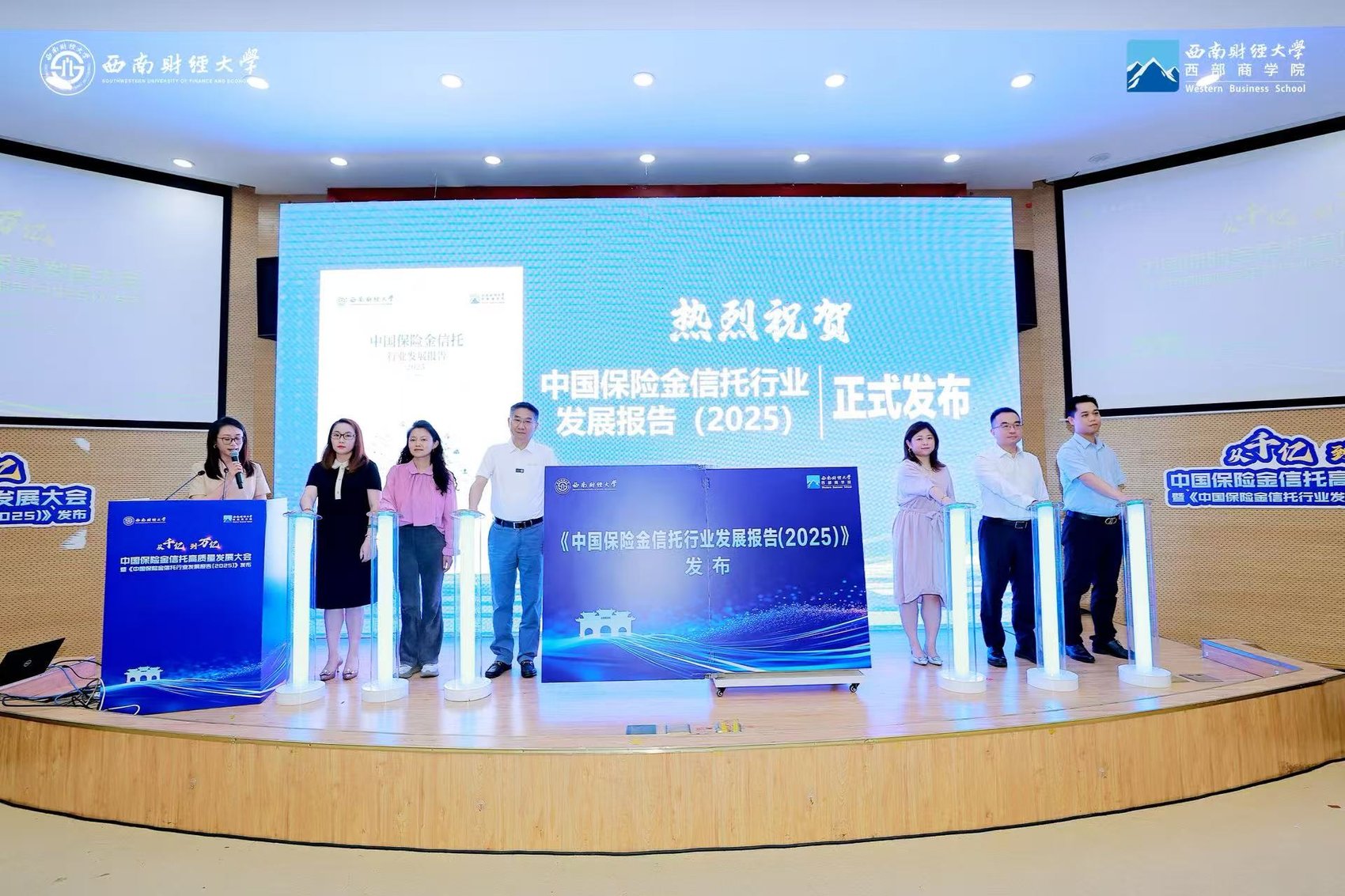 2025年6月20日,西南财经大学西部商学院(以下简称西部商学院)举行中国保险金信托高质量发展大会暨《中国保险金信托行业发展报告(2025)》发布仪式。来自全国50余家高校及保险业、信托业、银行业的嘉宾与专家齐聚一堂,围绕行业趋势、创新模式、人才战略等话题展开深入研讨,共同见证《中国保险金信托行业发展报告(2025)》 的发布。