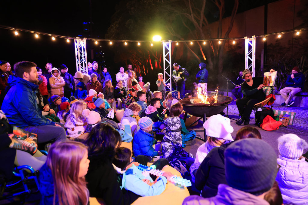 6月20日,在新西兰惠灵顿的毛利新年庆祝活动中,孩子们围坐在一起听毛利故事。