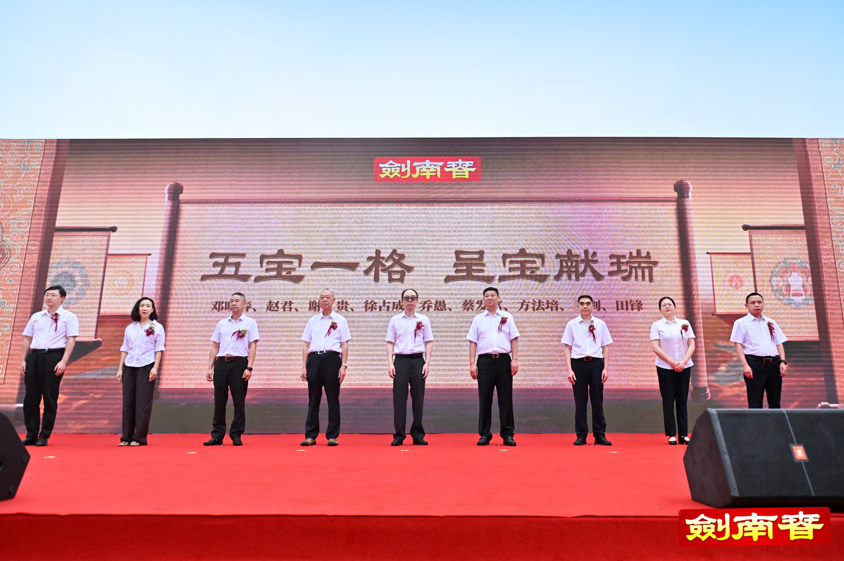 美酒博览会开幕前,剑南春大唐国酒生态园(二期)开酿献礼活动在厂区内举行,敬献“五宝一格”。