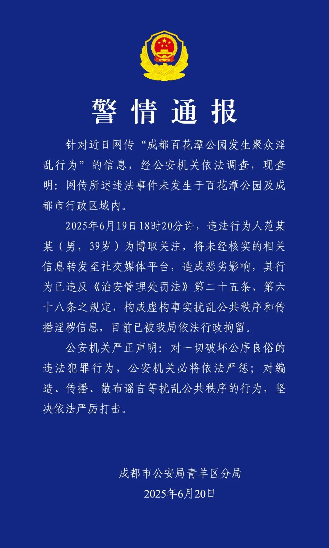 2025年6月20日,成都市公安局青羊区分局发布警情通报: