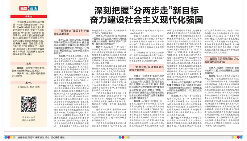 主持人:在不同历史阶段,根据国际国内形势和我国发展条件,提出相应战略目标引领事业发展,是我们党治国理政的重要经验。为什么说“分两步走”新目标适应了当前中国发展的新趋势?