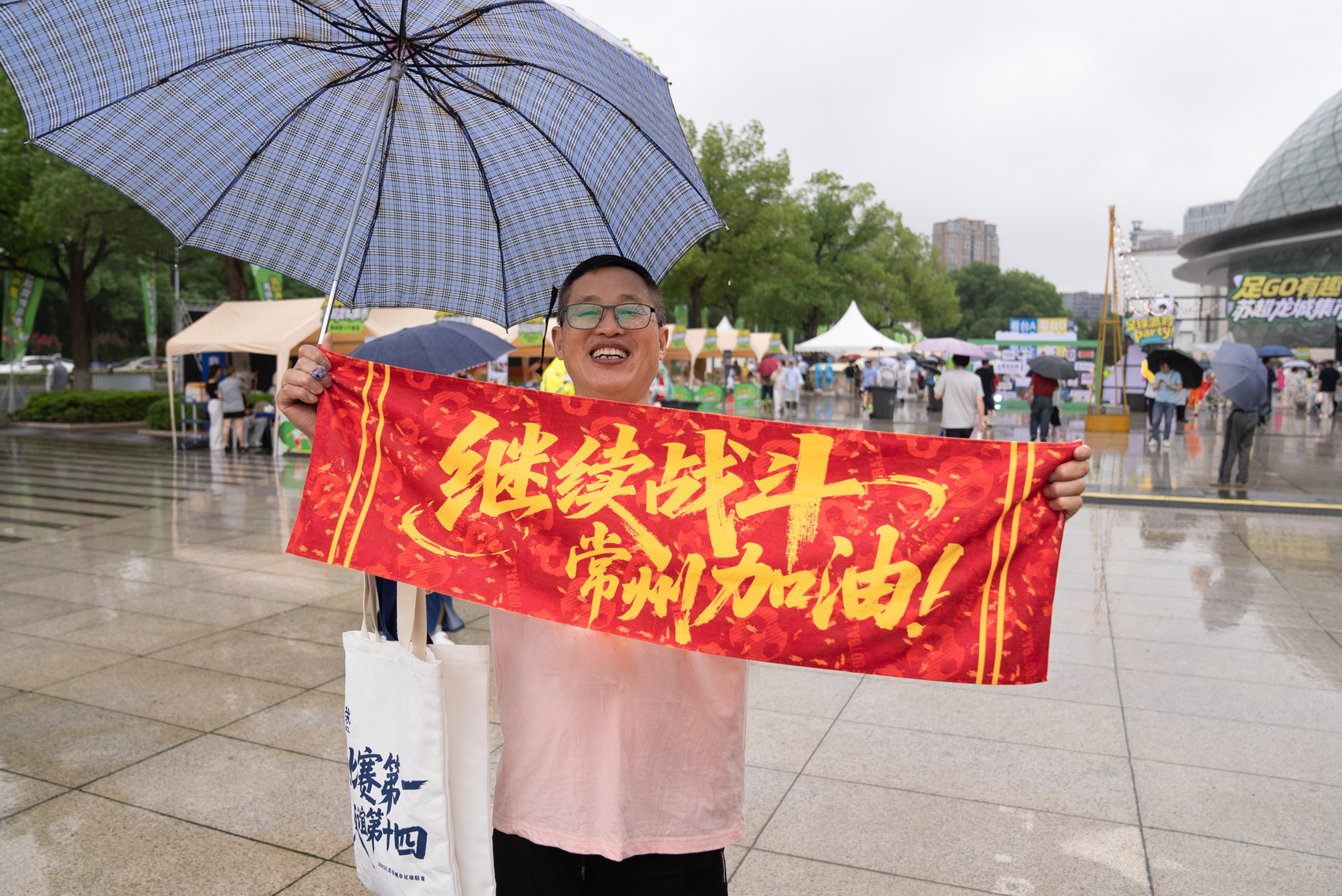 现场球迷对常州队有新期待。常州市民李丽说:“希望把‘常州’抹去的笔画,一笔一笔赢回来。”和李丽同行的常州球迷王学斌预测:“常州将以3:1胜出。”还有球迷大喊:“8:0拿下南京!”