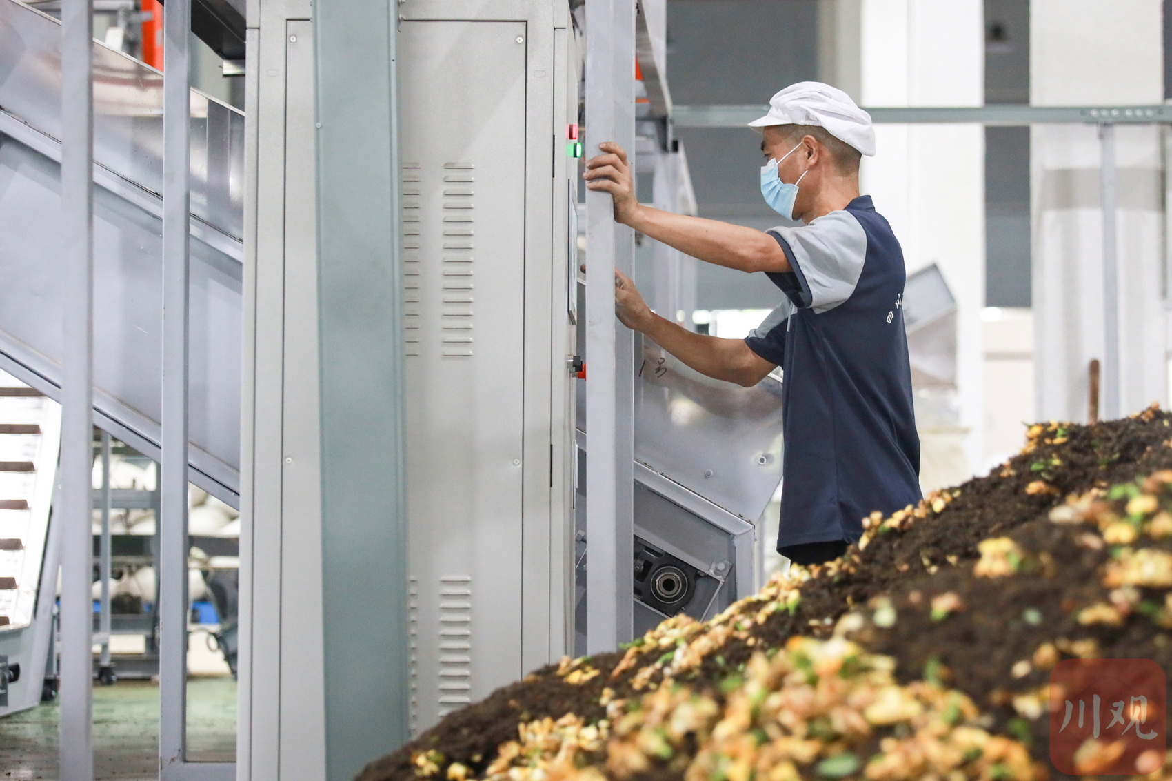 工人在新茶饮原料生产线操作机器