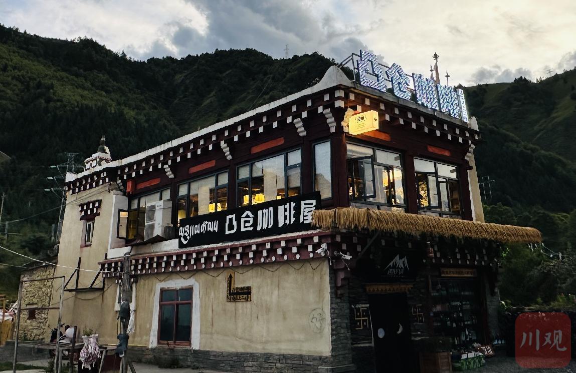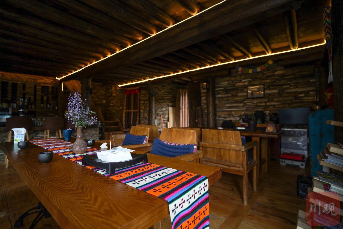 凸仓咖啡屋由闲置道孚民居改造而成。保留道孚民居原木“榫卯”建筑的特点,搭配上黑帐篷、土墙等特色装饰,吸引了不少游客、居民在此品尝咖啡。