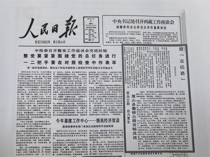 1984年3月,《人民日报》头版刊登了一篇名为《眉山县整修公路货畅其流》的报道,文中“国道拓宽至12米,通客车公社从35个增至43个,专业户达2.52万户”的内容,让眉山修路的成果震惊全国。这不是一组简单的数据,而是眉山人民奋斗的结晶。