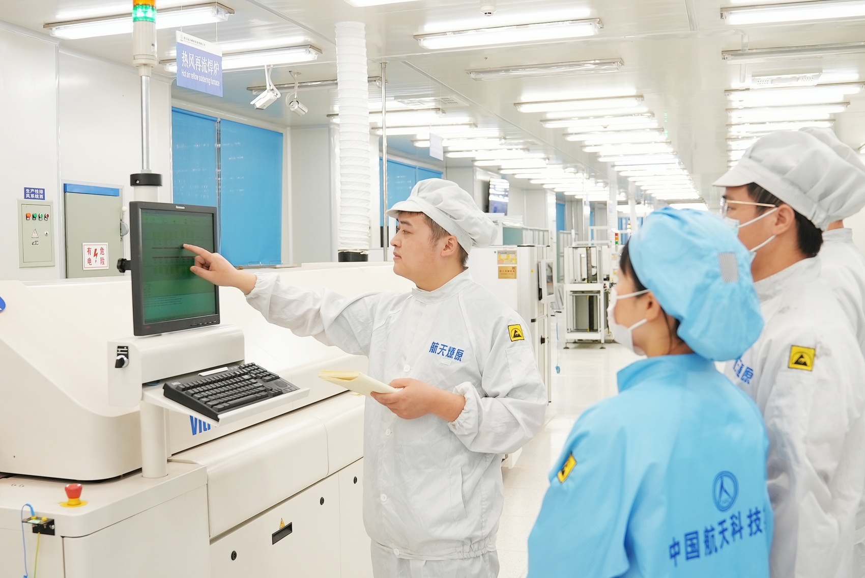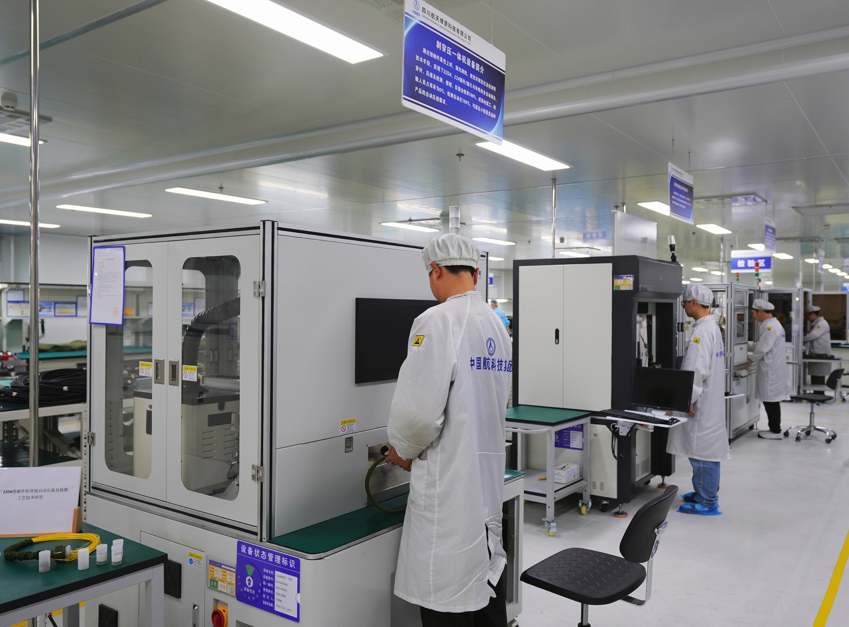 自动涂胶、自动喷涂、自动测试……昔日琐碎繁杂的总装工艺,已被8个典型自动化单元取代,整体效率提升22%。电装车间的通孔柔性自动化产线实现不同产品并线、混线生产,前后两个产品就可能是不同型号,解决航天电子产品换线耗时长、调试故障多等痛点问题……