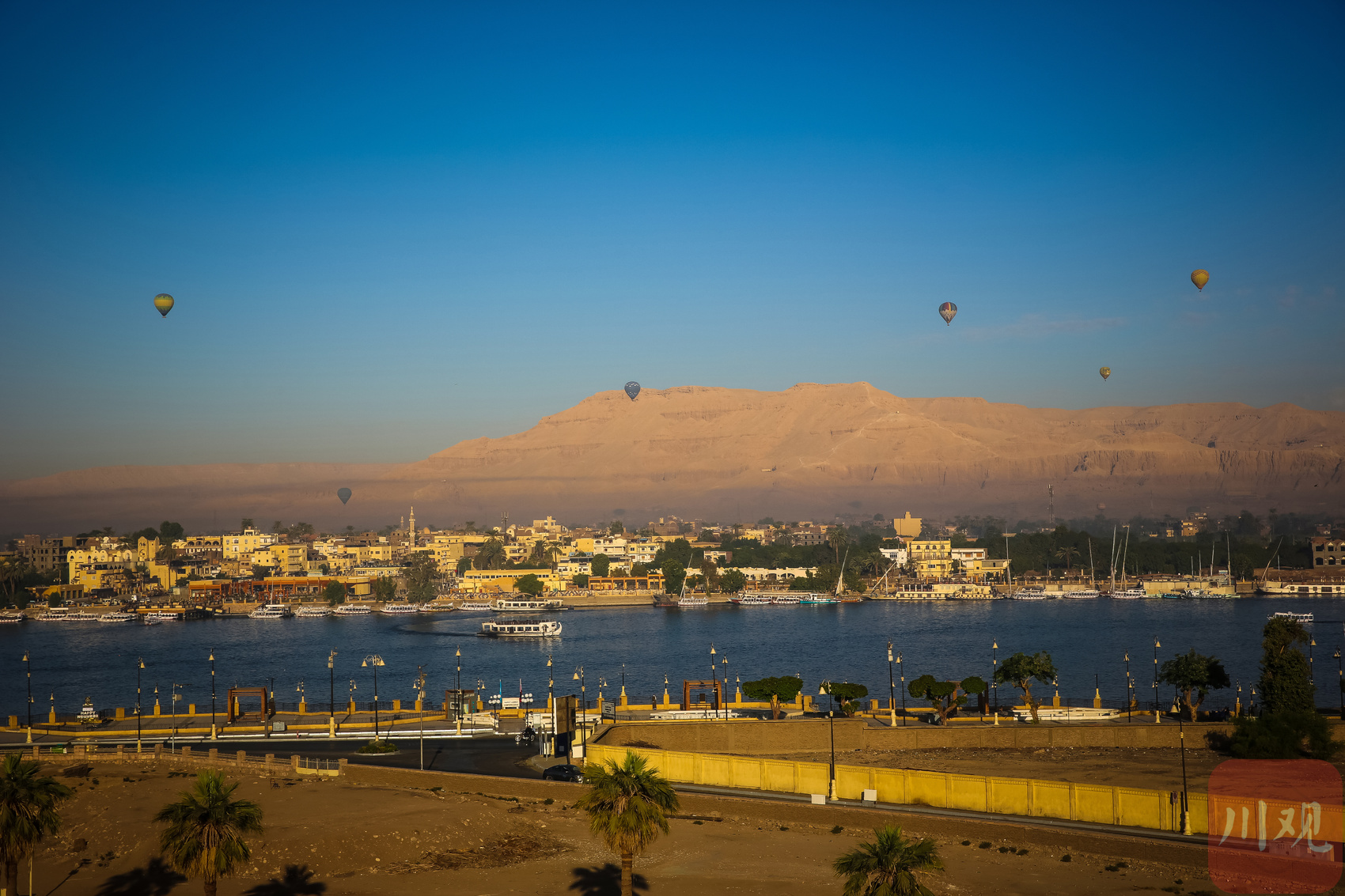 帝王谷外,游人乘坐热气球或游船在尼罗河上欣赏风景。