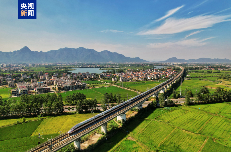 一列复兴号动车组列车行驶在沪昆高铁杭长段。(周围拍摄)