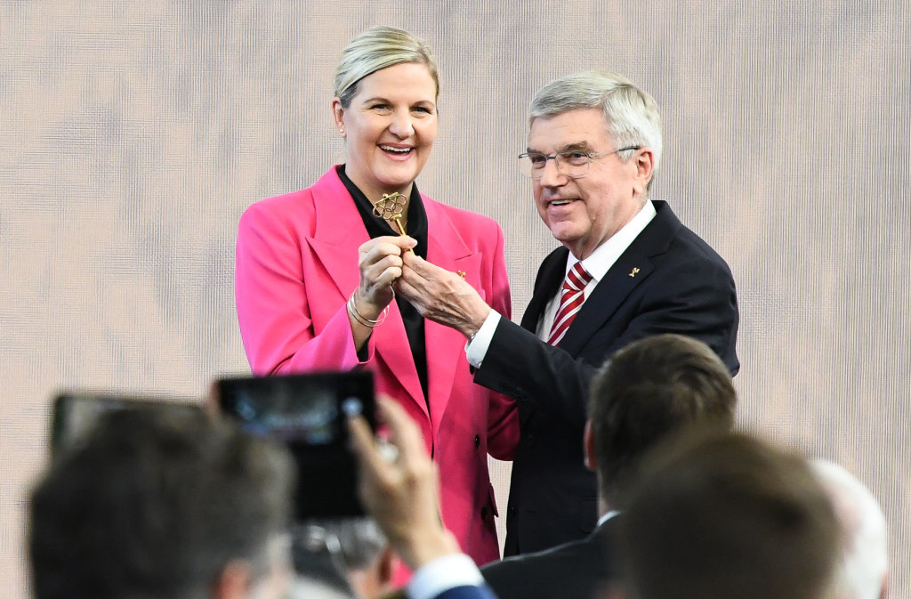 6月23日,托马斯·巴赫和柯丝蒂·考文垂(左)在主席职位交接仪式上。