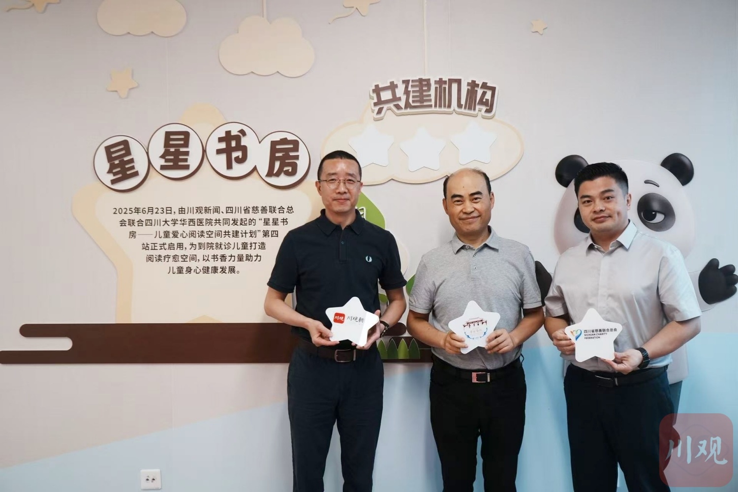 每一本书都是一颗星,当星光汇聚成河,便能照亮孩子们的夜空。2025年6月23日,由川观新闻、四川省慈善联合总会联合四川大学华西医院共同发起的 “星星书房——儿童爱心阅读空间共建计划”第四站,在四川大学华西医院锦江院区门诊部儿童医学中心揭牌并投入使用。为到院就诊儿童打造阅读疗愈空间,以书香力量助力儿童心理健康发展。