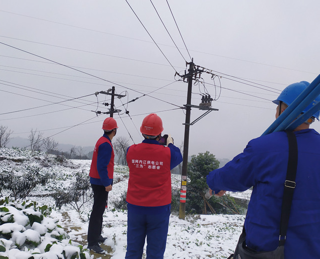 寒潮来袭,电力出击。1月7日夜间,内江出现寒潮,部分地方出现降雪,用电负荷攀升。国网内江供电公司高度重视,多措并举,安排人员奔赴现场开展特巡和排查隐患,实时监测线路用电负荷,对重负荷线路进行红外线测温,同时积极开展抢修复电工作,确保电网稳定运行,全力保障市民生产生活用电。
