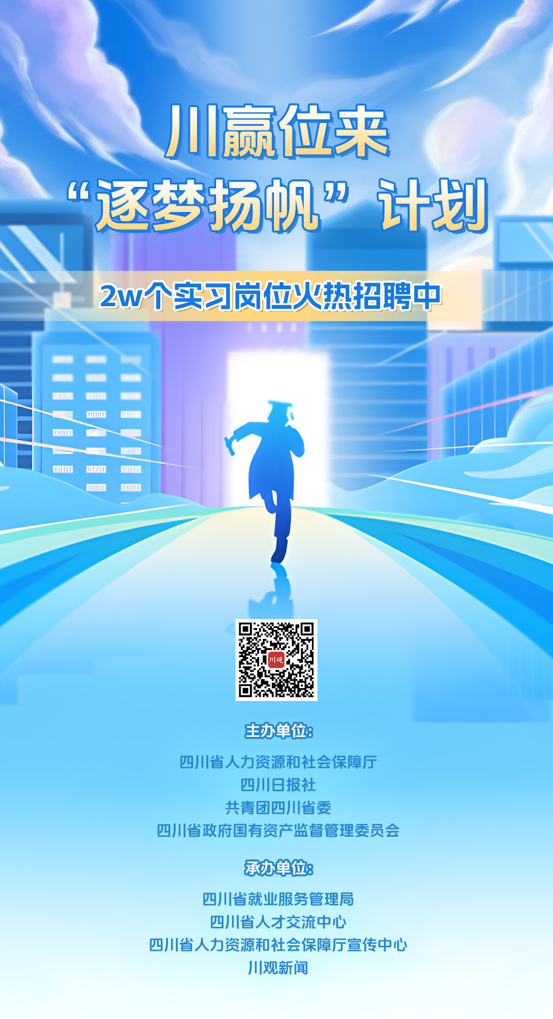 继推出滴滴出行、顺丰寄递青春券包后,川观又开始送“岗位”啦,登陆“扬帆”,及时就“位”,实习到“点”。