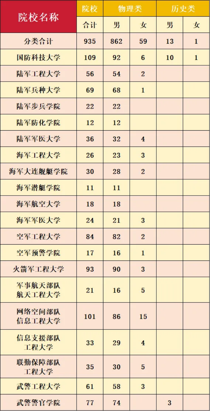 20 所军队院校在川招 935 人,物理类占比高,历史类机会少