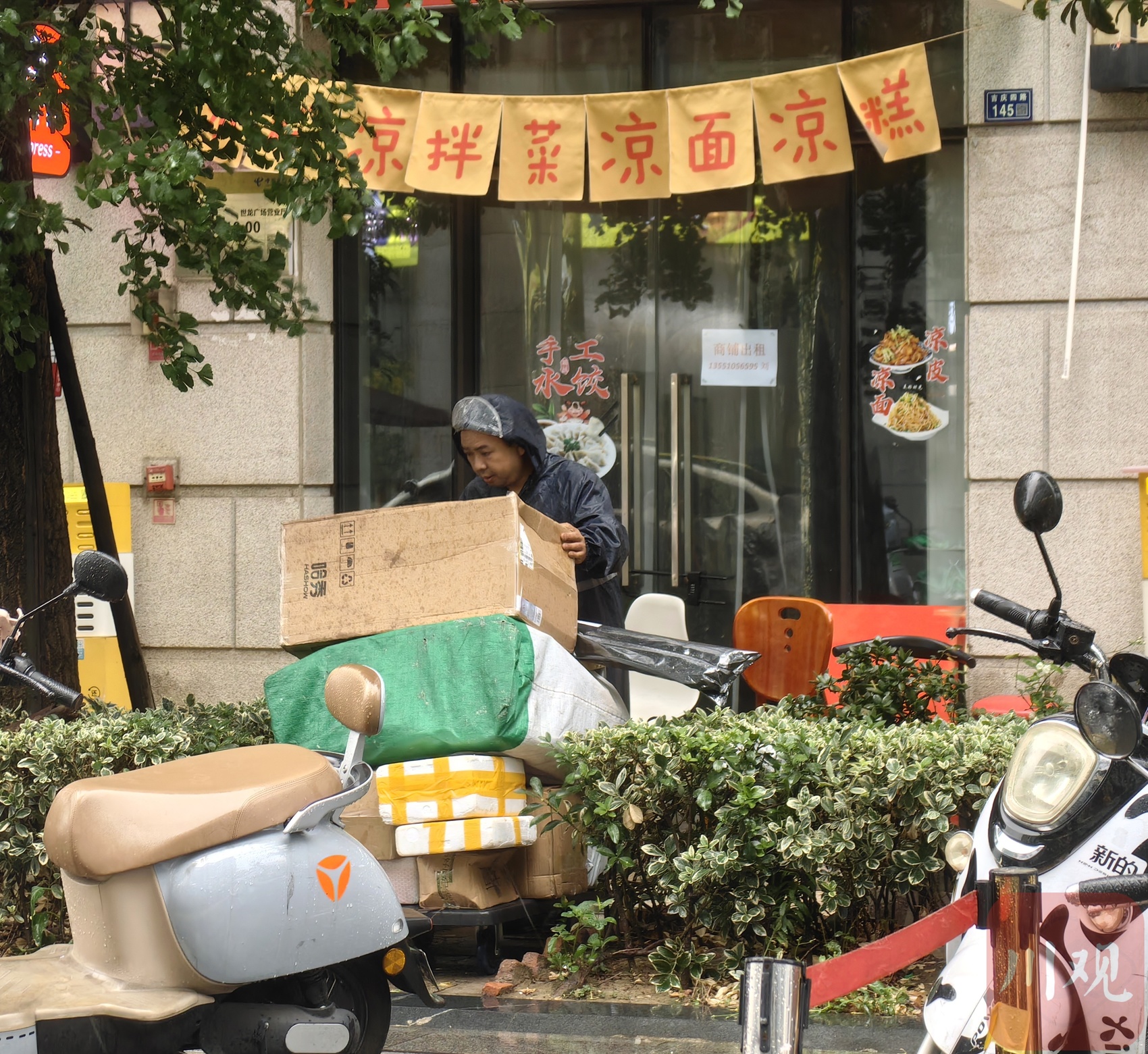 6月24日,大风刮倒了外卖小哥的电瓶车。