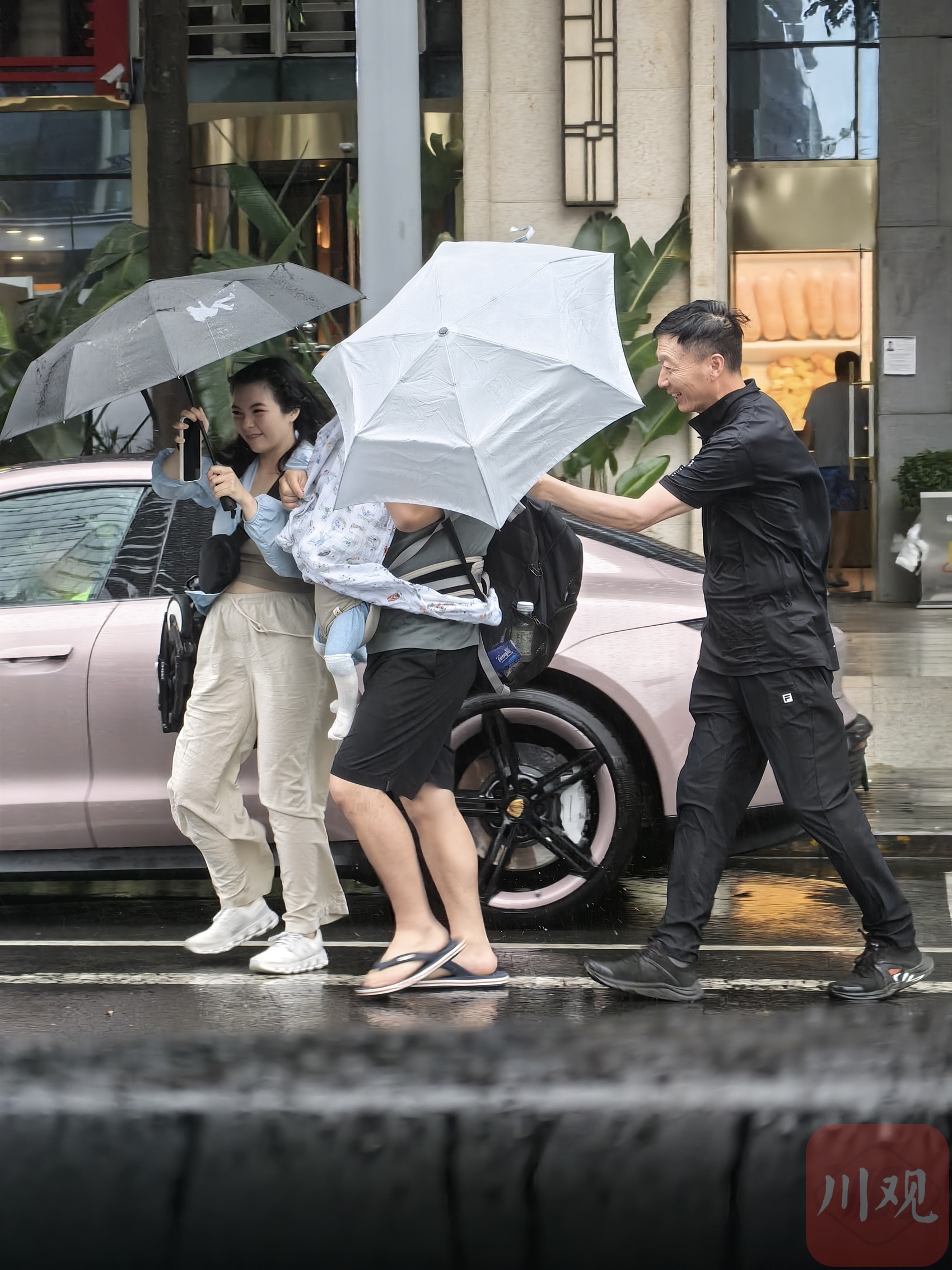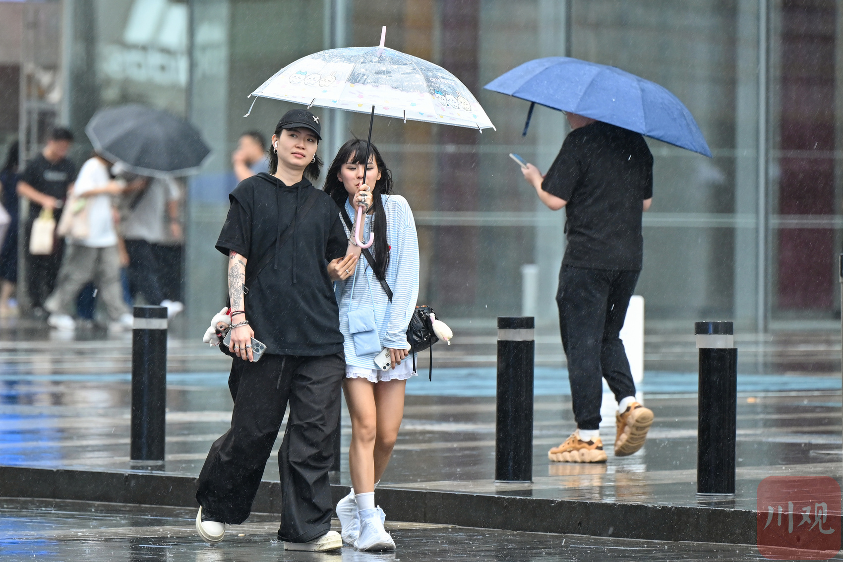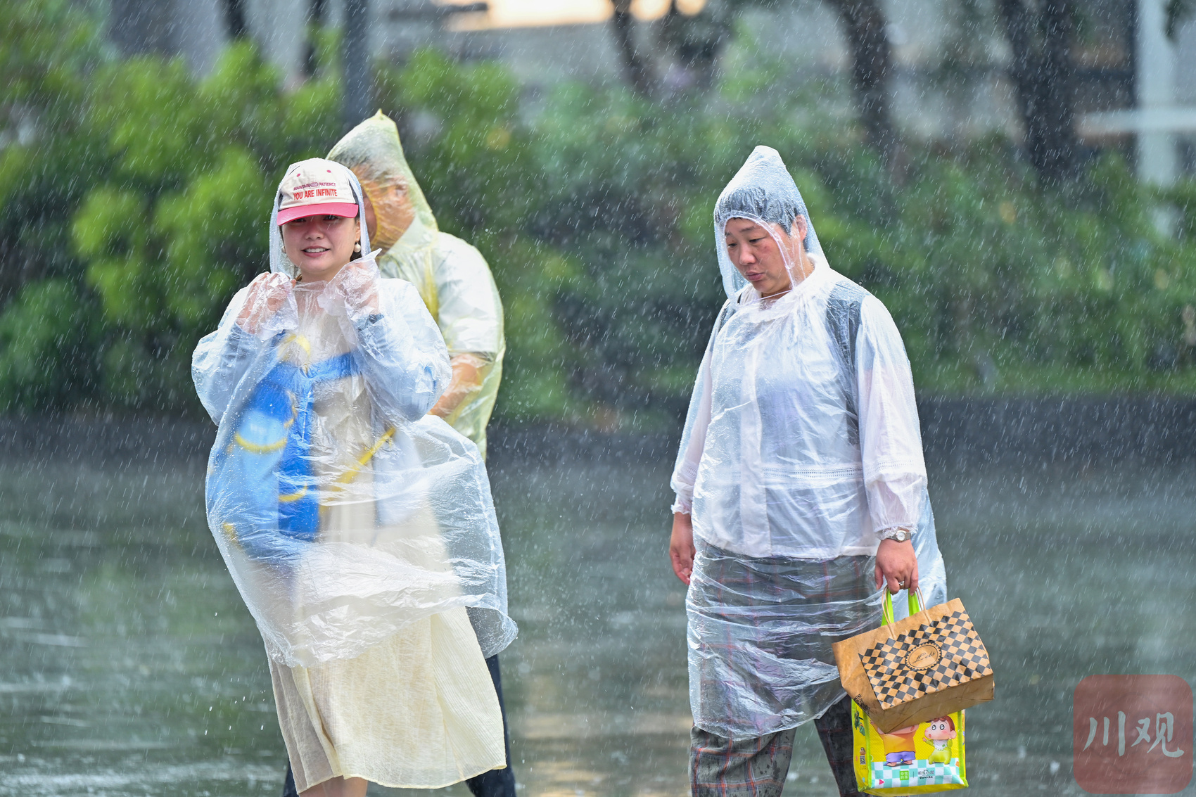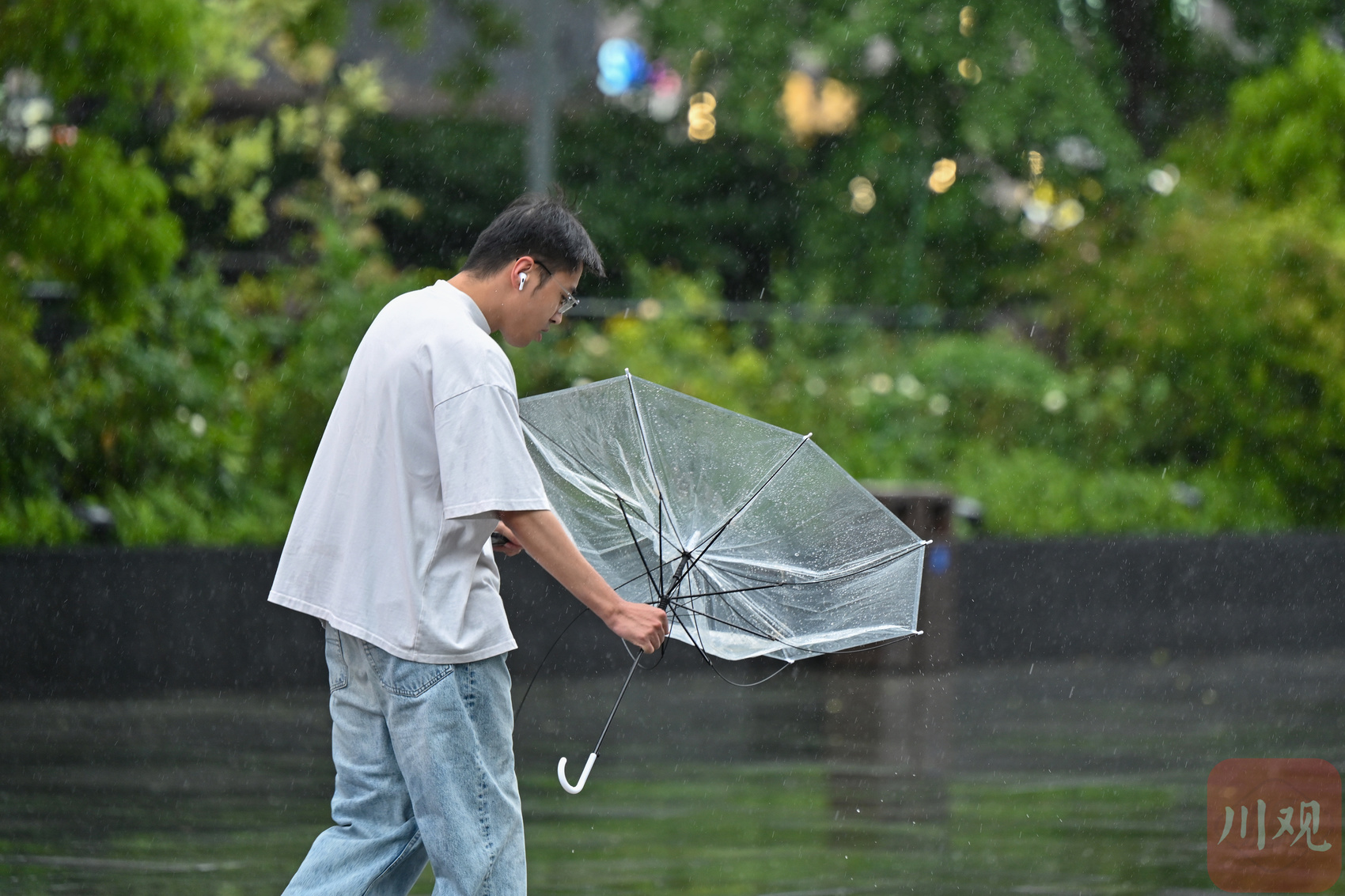 从6月23日晚上开始,成都全市范围迎来了一轮强降雨天气。从24日上午10时至下午16时,成都西部小雨,中东部中到大雨,东部局部地方暴雨,全市共计暴雨17站,大雨133站,个别区域最大降水量超过80毫米。出行的人们纷纷以雨伞、雨衣等装备抵御大风和降雨,在街头巷尾上演了“雨中众生相”。