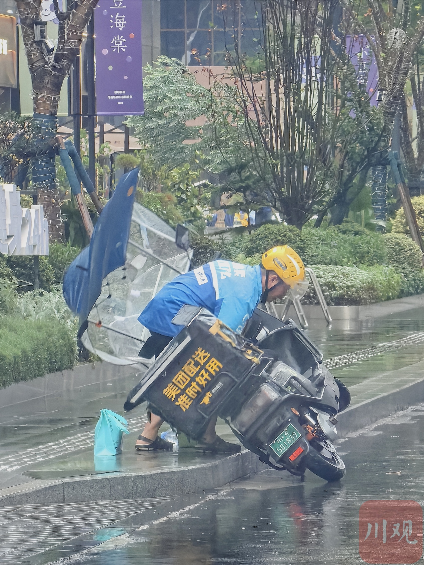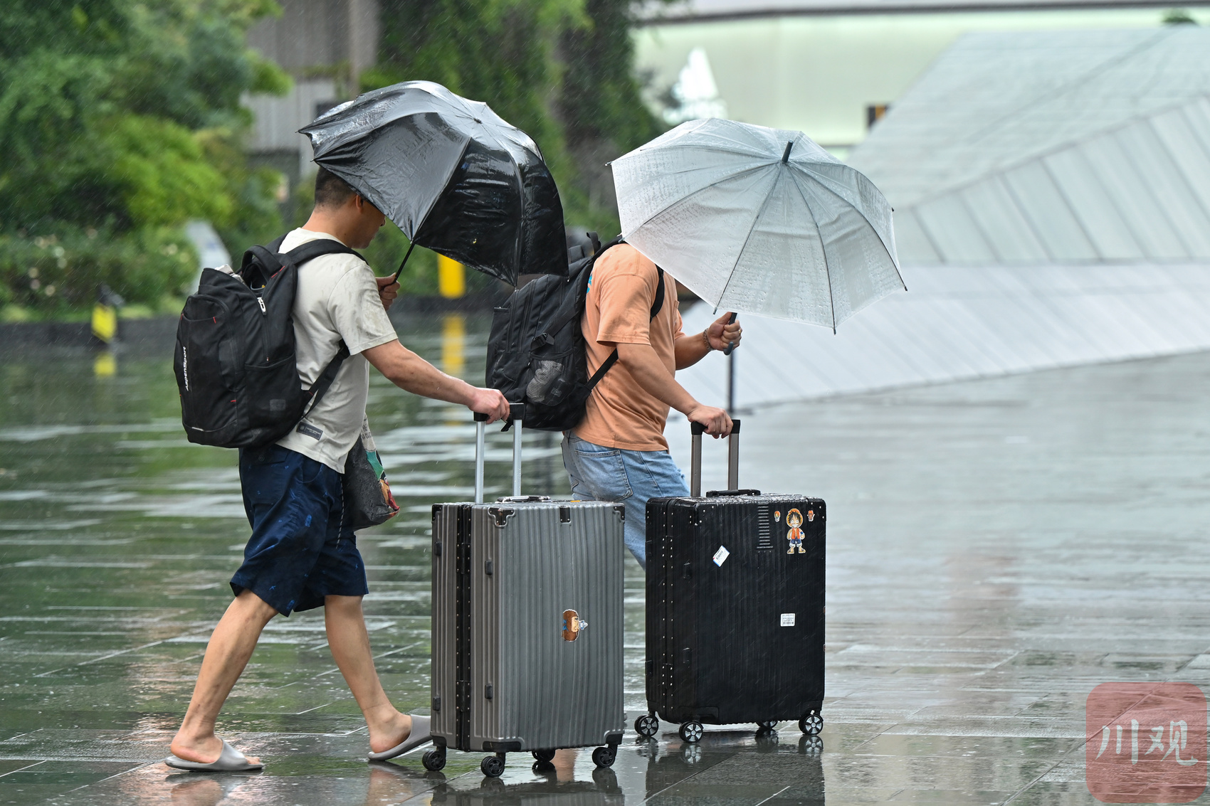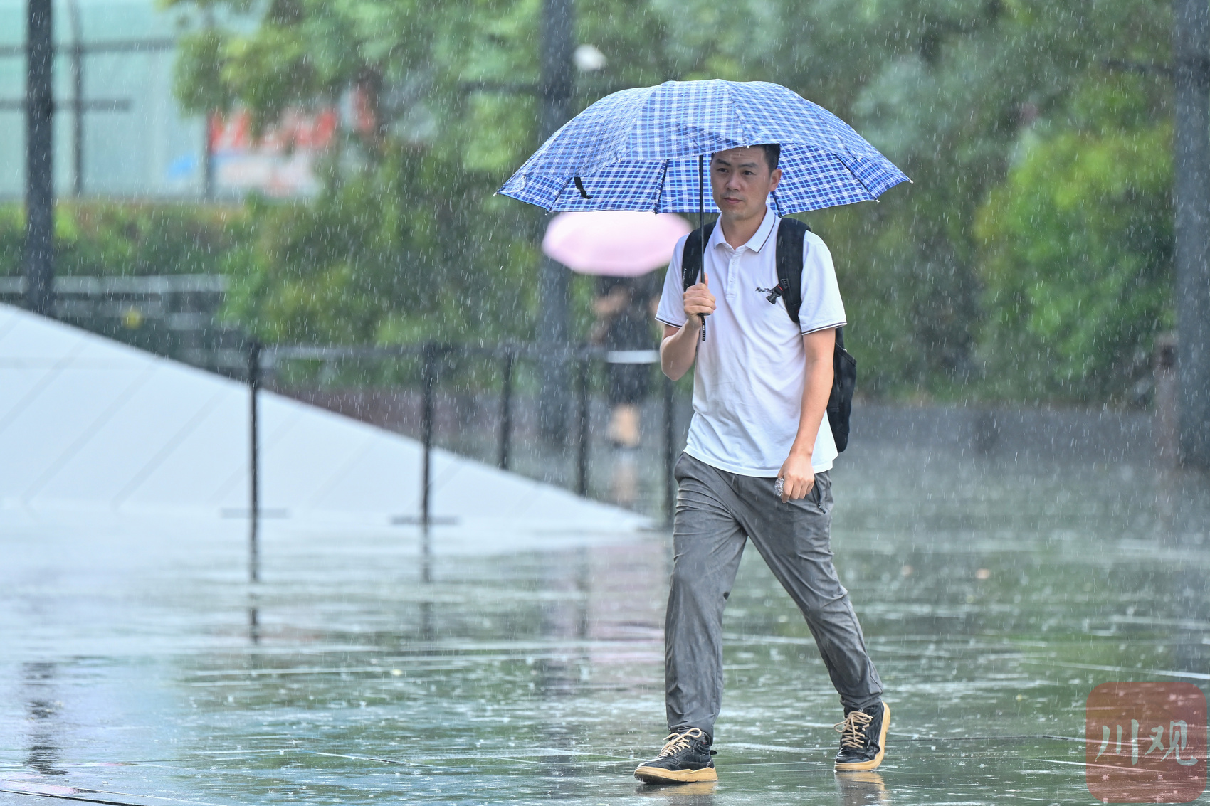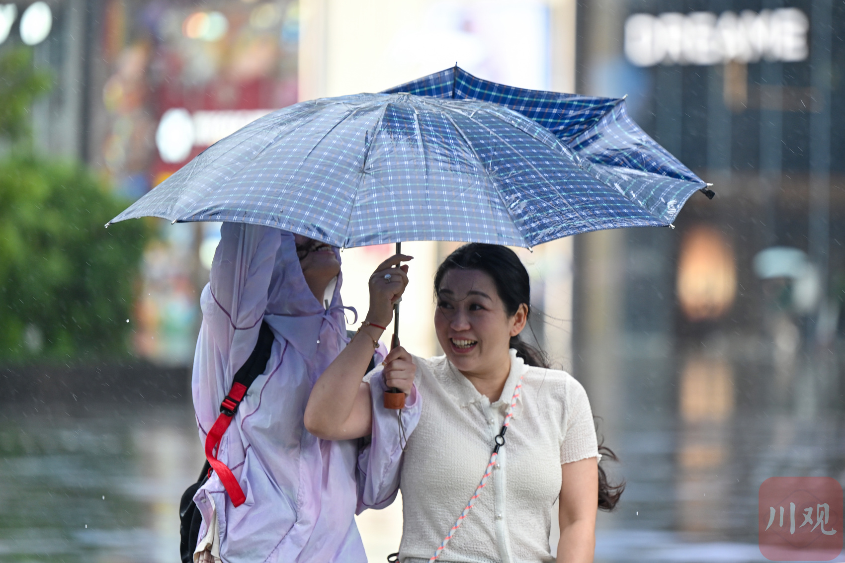 从6月23日晚上开始,成都全市范围迎来了一轮强降雨天气。从24日上午10时至下午16时,成都西部小雨,中东部中到大雨,东部局部地方暴雨,全市共计暴雨17站,大雨133站,个别区域最大降水量超过80毫米。出行的人们纷纷以雨伞、雨衣等装备抵御大风和降雨,在街头巷尾上演了“雨中众生相”。