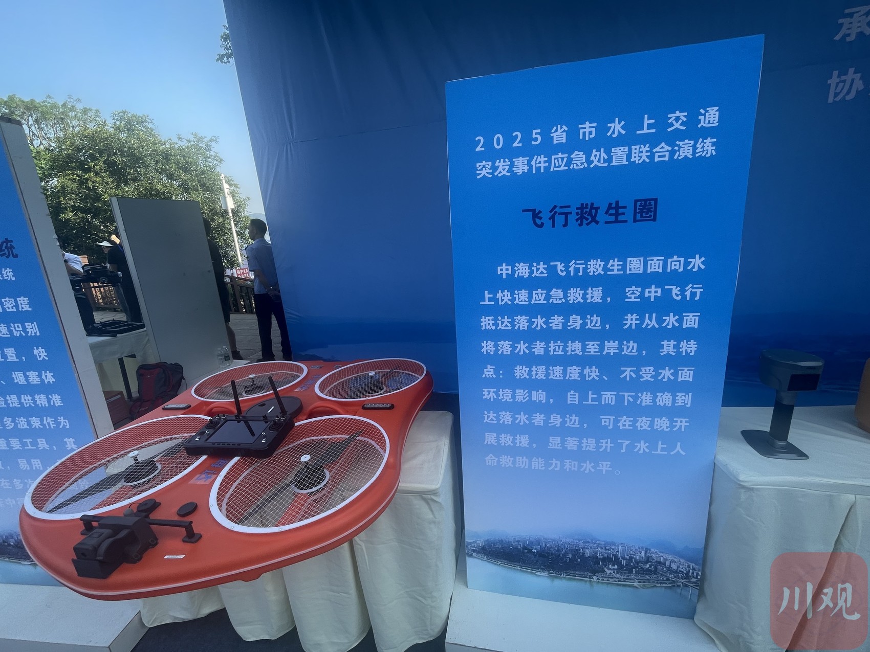 据介绍,飞行救生圈突破了传统救援受距离、风浪限制的难题,显著缩短救援响应时间。“这种设备已经进入我们今年的防汛装备库,遇到突发事件可及时响应。”南充市航务管理局安全监督长王振华说,当天,这样的参演设备共有26台(套),除了飞行救生圈,还有无人船等。无人船搭载多波束声呐系统可以对水下情况实时扫描,并形成三维模型,仿佛在水下安了一双透视眼。