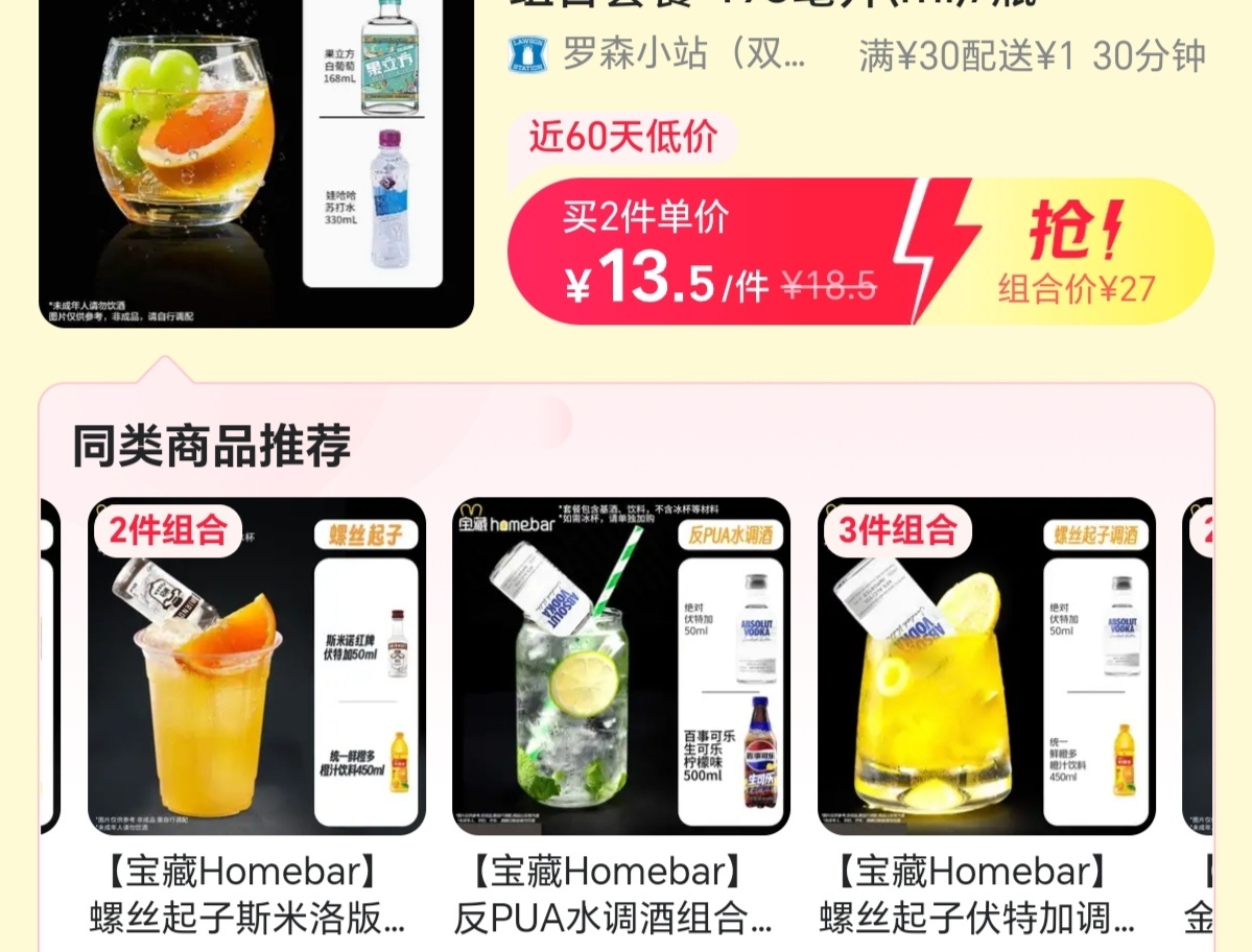 “伏特加+橙汁+葡萄气泡水=绝对日落”“白朗姆+雪碧+薄荷叶=简易莫吉托”“利甜+奶茶=伦敦雾”“芝华士+柠檬茶=长岛冰茶”……在社交媒体上,各类“便利店调酒公式”层出不穷,精心搭配的小酒版、软饮组合以及清晰的配比指南,大幅降低了新手门槛。抖音平台上,#便利店调酒#话题播放量轻松破亿,小红书相关笔记更是超过7500篇,年轻用户群热衷于通过社交平台分享自己的创意配方和微醺体验。部分门店自营的某些款式冰杯类产品月销量甚至突破千件。