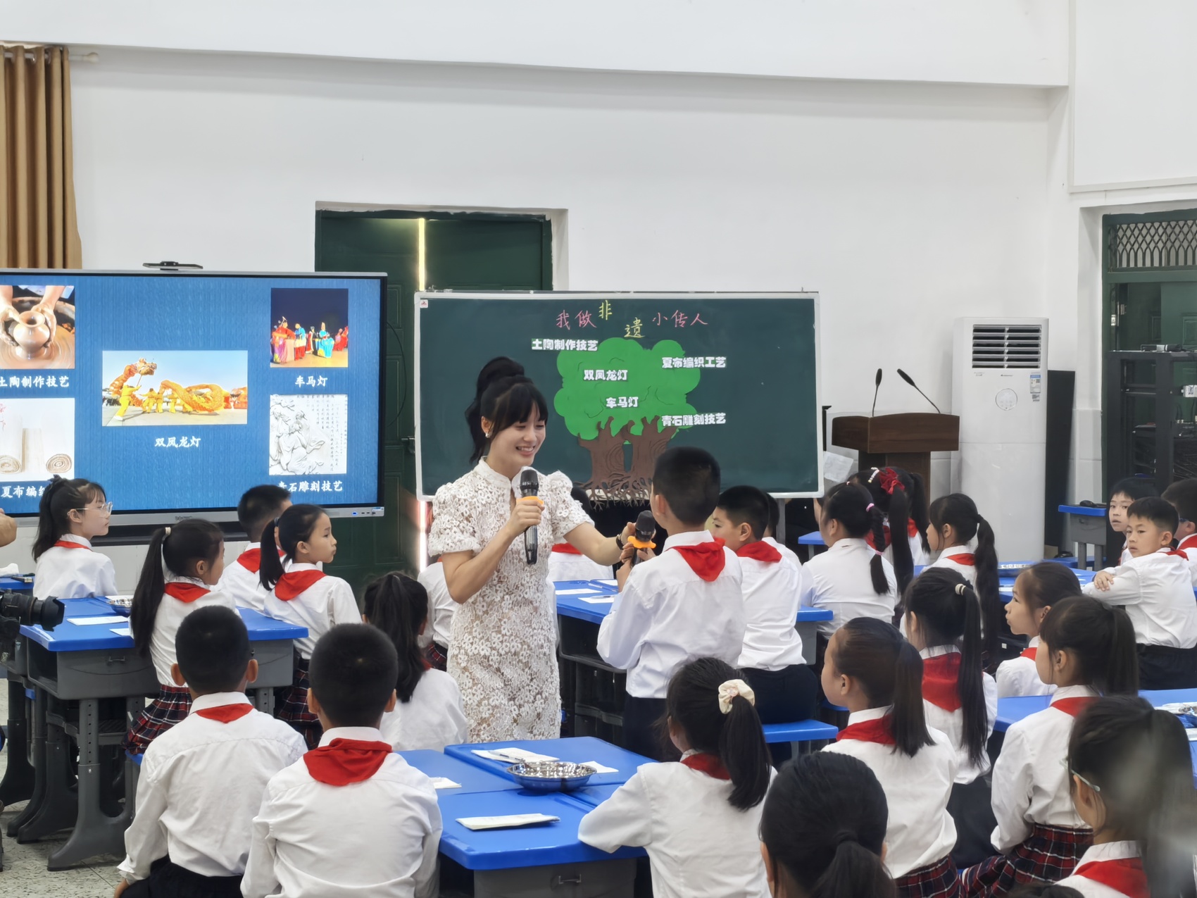 “大家知道什么是非物质文化遗产吗?”“隆昌代表性的非物质文化遗产主要有隆昌土陶制作技艺、隆昌夏布编织工艺、隆昌青石雕刻技艺……”