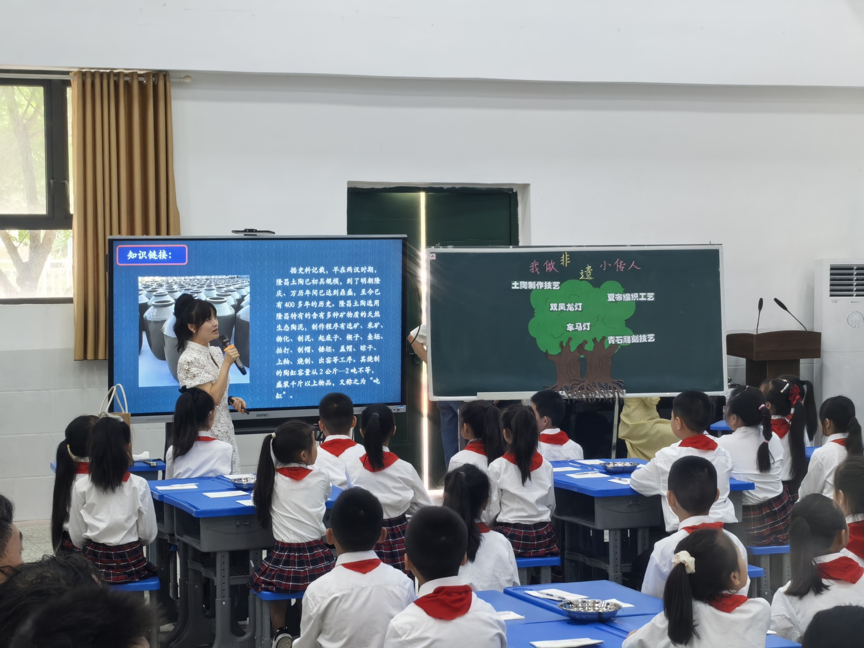 6月24日,内江市“史志进校园”现场会暨隆昌市“史志文化进基层、进课堂”活动隆华路小学举行。活动上,授课老师李凡围绕隆昌非遗代表性项目,通过实物展示与互动教学,对隆昌土陶制作技艺、夏布制作工艺等本土元素融入课堂,带领学生厚植文化自信,感悟工匠精神,让他们从史志教育中感受了不一样的家乡。